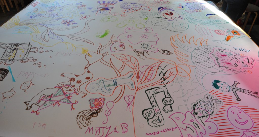 Marres werkt samen met vijf masterstudenten (Giulia Bosa, criminologie; Aishwarya Kharade, tandheelkunde; Utkarsh Mittal, internationale zakenwereld; en Justin de Raikem, psychologie) als team 5enses. Samen proberen we emoticons en symbolische beschrijvingen voor de zintuigen te onderzoeken, met als uiteindelijk doel een nieuwe set symbolen te lanceren. Deze nieuwe symbolische “taal” kan gebruikt worden in de Training the Senses workshops van Marres, en bijdragen aan hoe we onze zintuigen ervaren, begrijpen, delen en gebruiken.