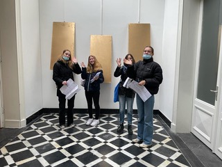 - De eerste workshop bestond uit het invullen van een kijkwijzer, waarin de leerlingen zelfstandig aan het werk werden gezet. In de verschillende kamers van Marres proefden de leerlingen de sfeer die ze vervolgens in hun eigen beelden, woorden en gevoel konden noteren op de kijkwijzer.