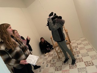 - Daarna kregen ze een rondleiding van een museumdocent. De thematiek van de tentoonstelling “Vrijheid & Liefde” zorgde voor een boeiend gesprek tussen de leerlingen waarin ze het thema verbonden aan de beelden die ze zagen. De tentoonstelling was een confronterende spiegel voor de jongeren, die soms hun eigen huidige omstandigheden en ontwikkeling herkenden.