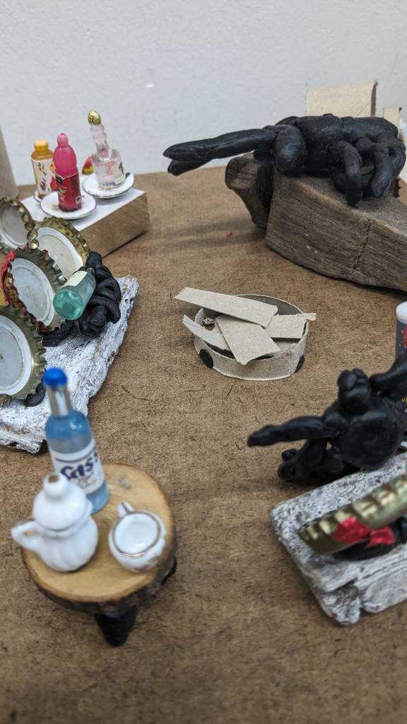 In navolging van een ingesproken verhaal over de ‘kakkerlakkenwereld’ van de Peruaanse kunstenaar Arturo Kameya, te zien in de tentoonstelling Opaque Spirits, gaan de leerlingen aan de slag met hun eigen verhaal en maken ze met allerlei materialen maquettes van hun eigen fantasiewereld.