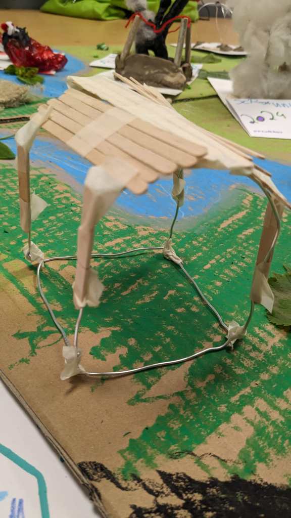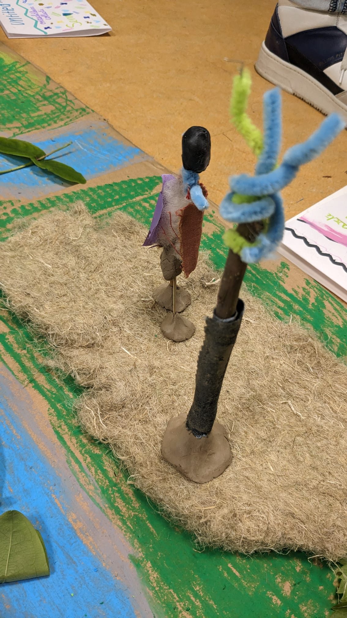 De volgende les gaan ze hun tekening uitwerken tot een 3D-sculptuur. Ze maken hun eigen beeldenpark, zoals in Odapark. De leerlingen werken hun eigen ideeën uit met diverse materialen (klei, hout, ijzerdraad, kurk, karton, wol, noppenfolie etc.). Het proces en het ontdekken van nieuwe materialen via tast en hechtingsmogelijkheden staan centraal.