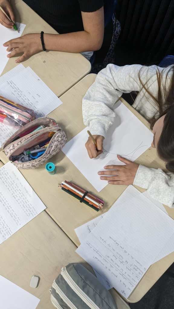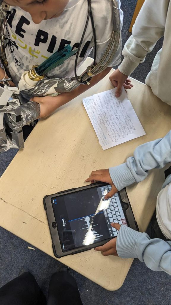 Na het maken van hun eigen 3D transformator schrijven de leerlingen een verhaal vanuit het perspectief van hun transformator. Ze vertellen wat ze voelen, zien of ruiken, waar ze over fantaseren. Vervolgens presenteren ze dit aan hun klasgenoten en nemen ze het verhaal op via de dictafoon app.