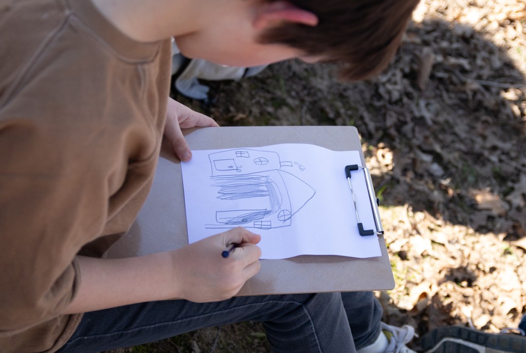 Aan de hand van het Onzichtbare Collectie verhaal #75 Pantitlan Paradero over het werk van Alejandro Galván en ingesproken door Eline Willaert, reflecteerden leerlingen op de vraag wat thuis voor hen betekent. Is er een specifieke plek die belangrijk voor hen is? Wat zijn de geuren, kleuren, geluiden die thuis typeren? Al luisterend naar het verhaal maakten de leerlingen aantekeningen en een snelle schets hoe ze dachten dat het werk eruit zou zien. Vervolgens gingen leerlingen hun eigen thuis visualiseren, voor sommigen was dit een plek of object, voor anderen een persoon of gevoel. Aan het einde van de eerste les werd aan de leerlingen gevraagd om een object van thuis mee te nemen dat belangrijk voor ze is.